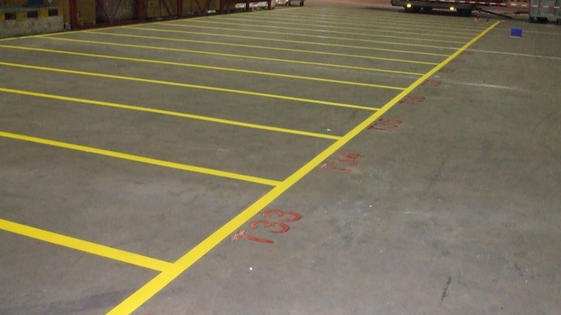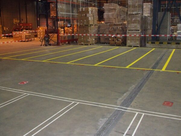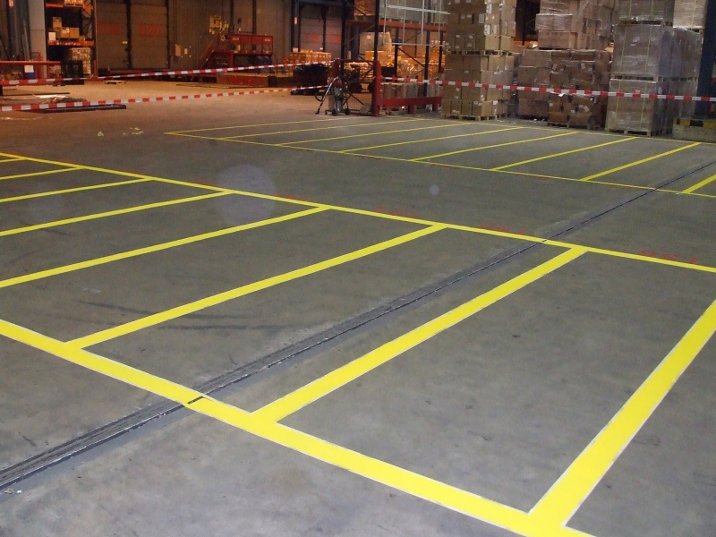 • Werkzaamheden: Het opnieuw belijnen van diverse onderdelen in de vrachthal, hierbij is ook een nieuwe codering geplaatst.